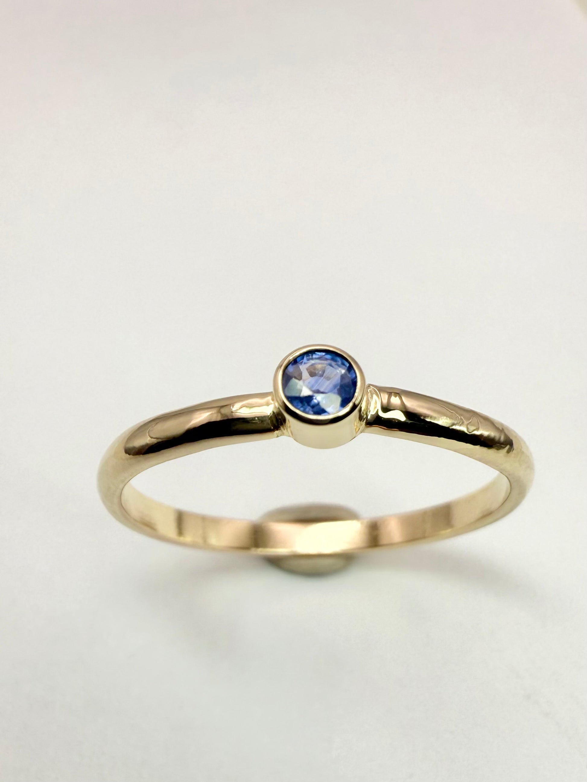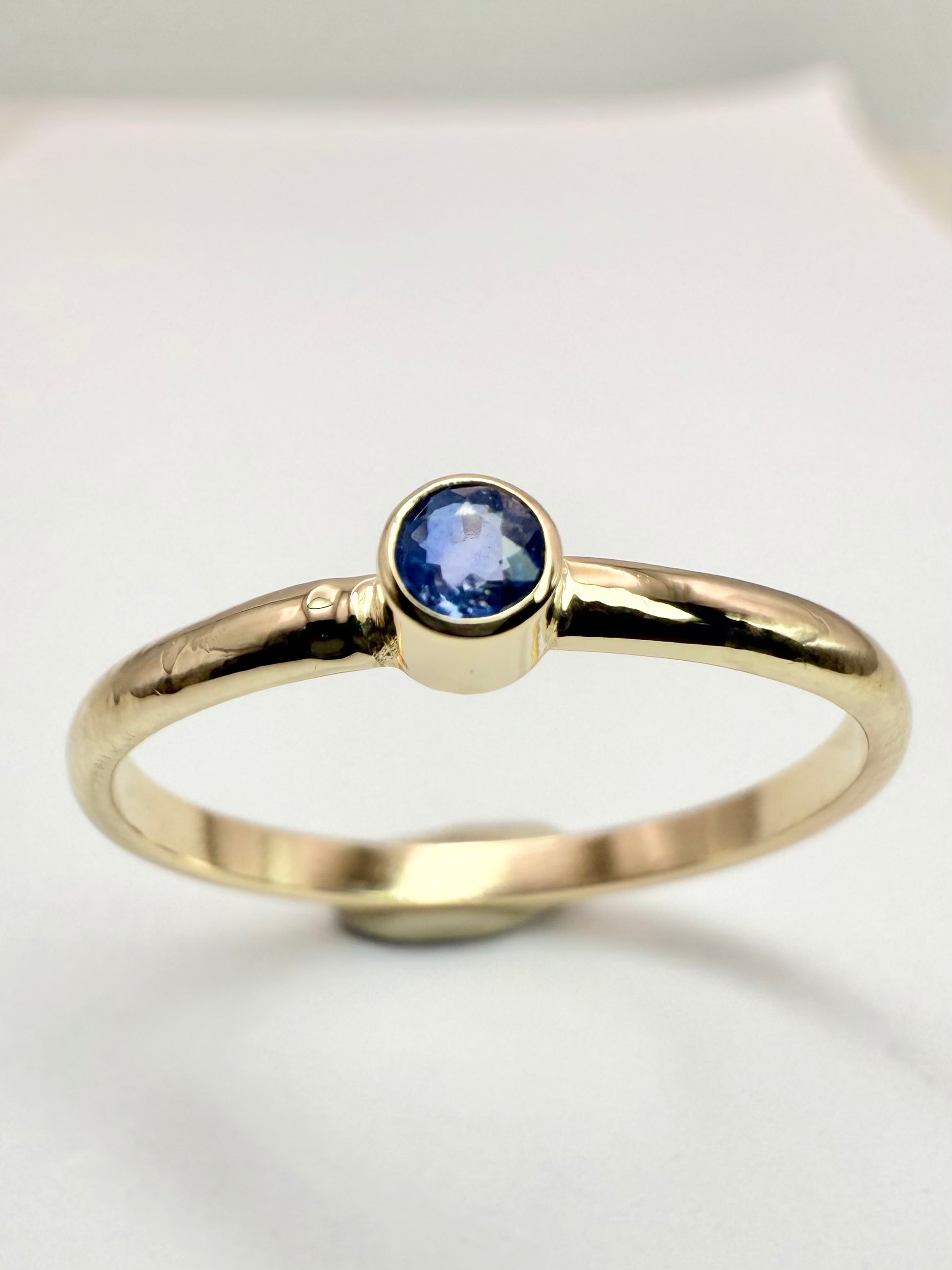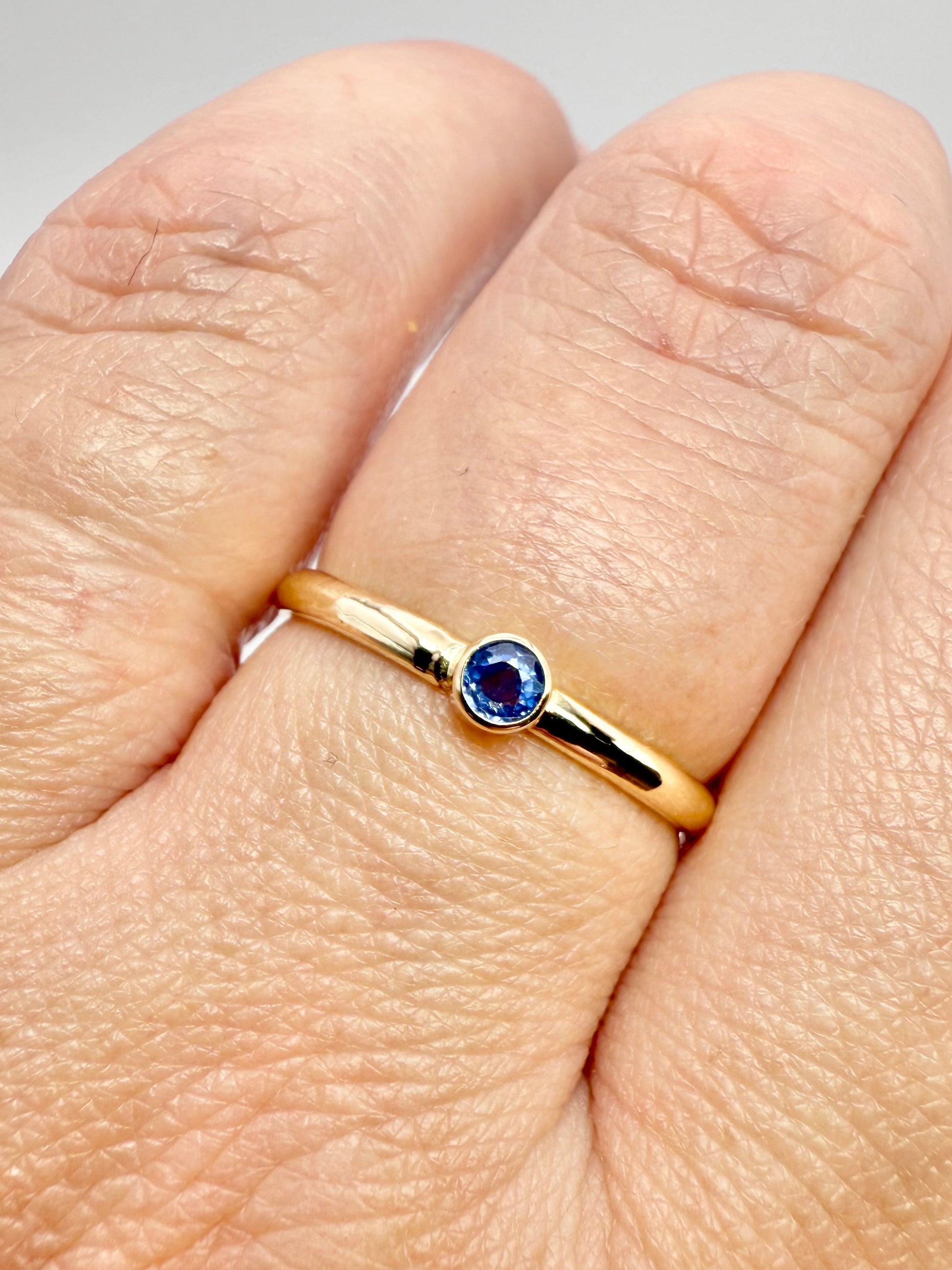 A beautiful blue sapphire set in to 9ct solid yellow gold, the ring band is 2mm D shape.