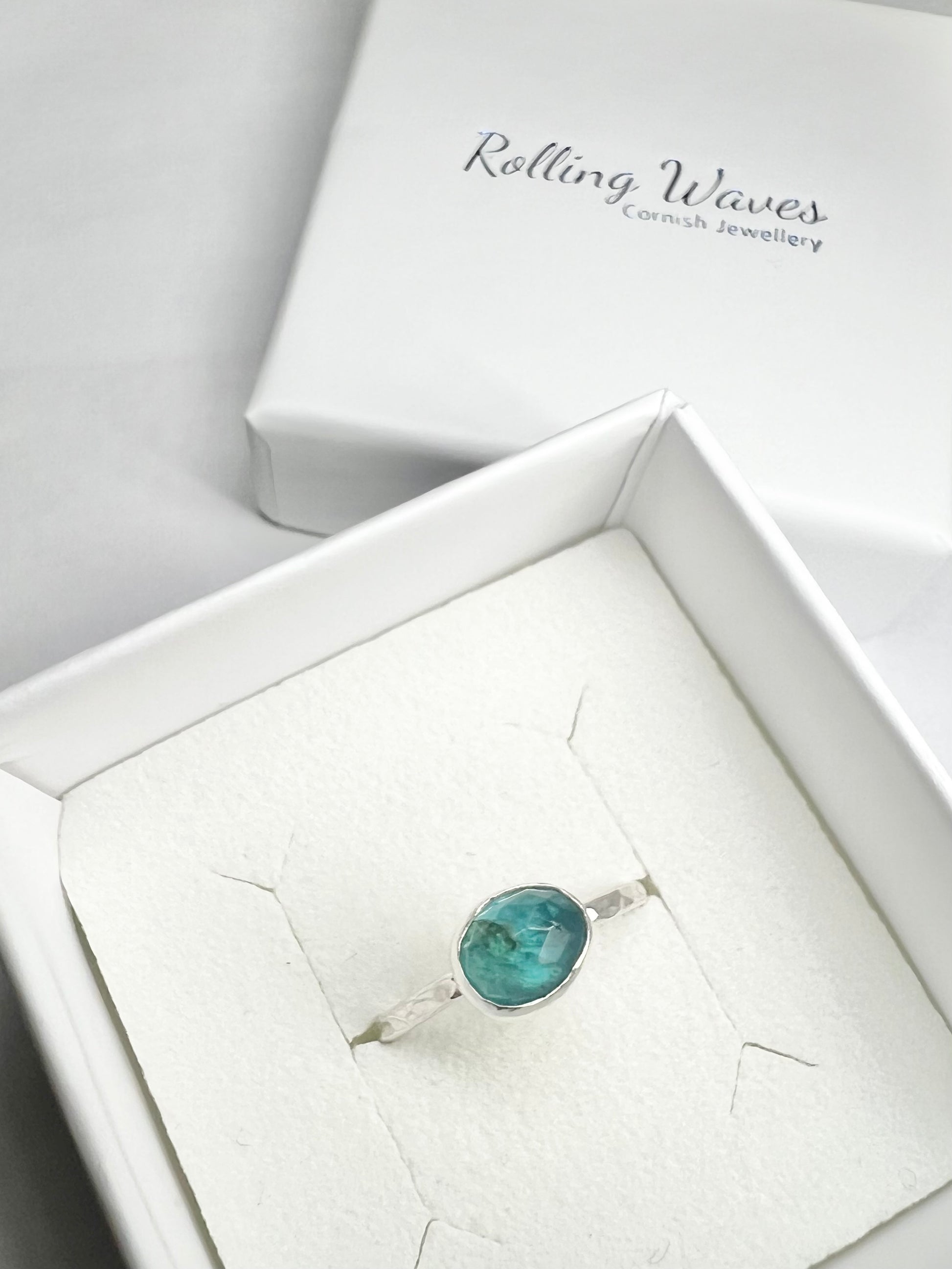 The ring will arrive in a branded Rolling Waves jewellery box and tied with a ribbon.