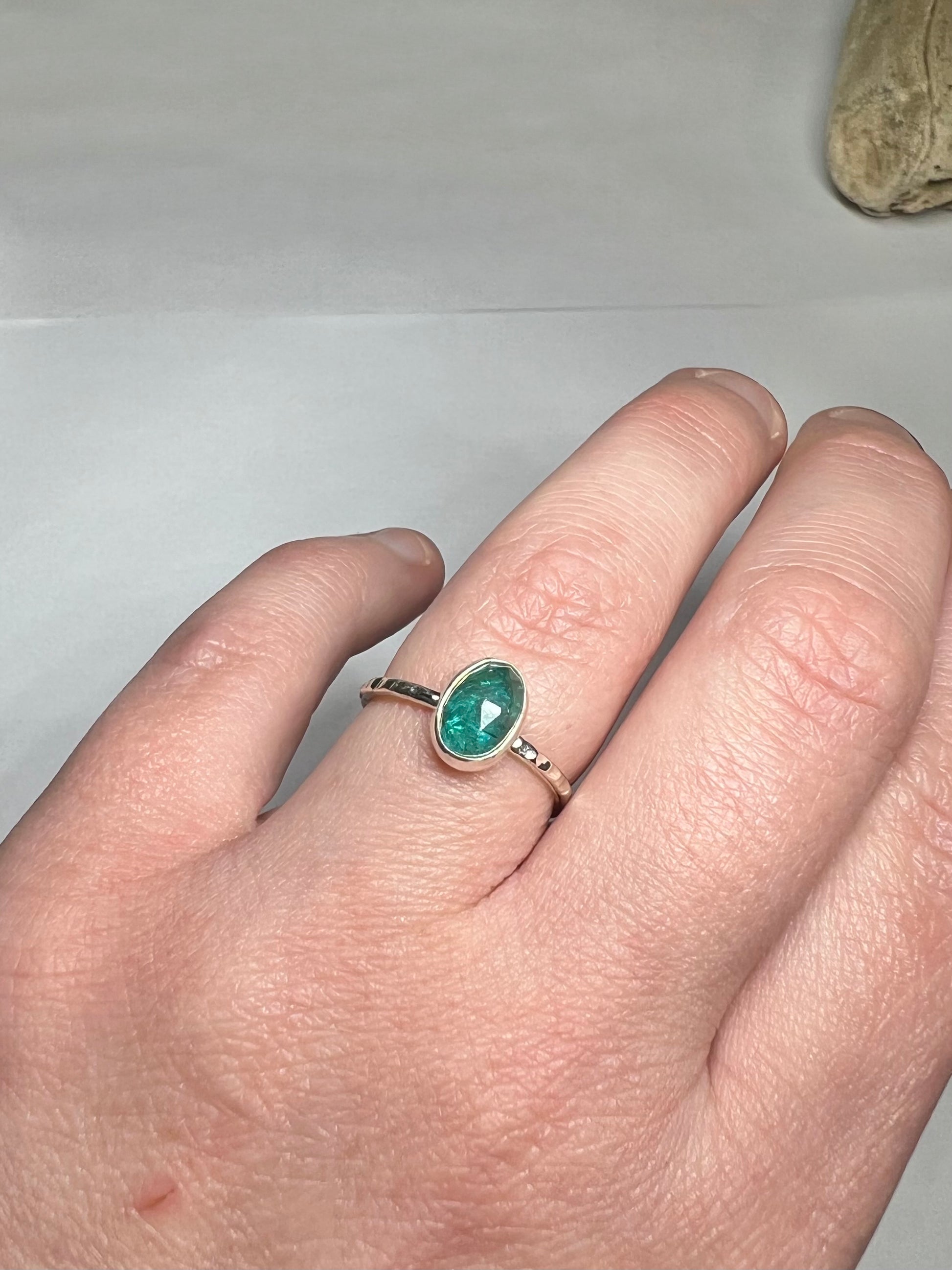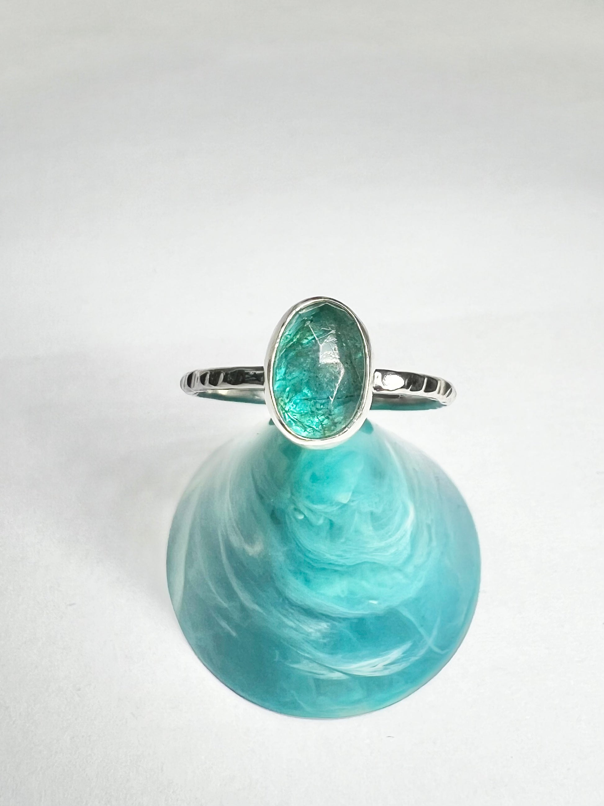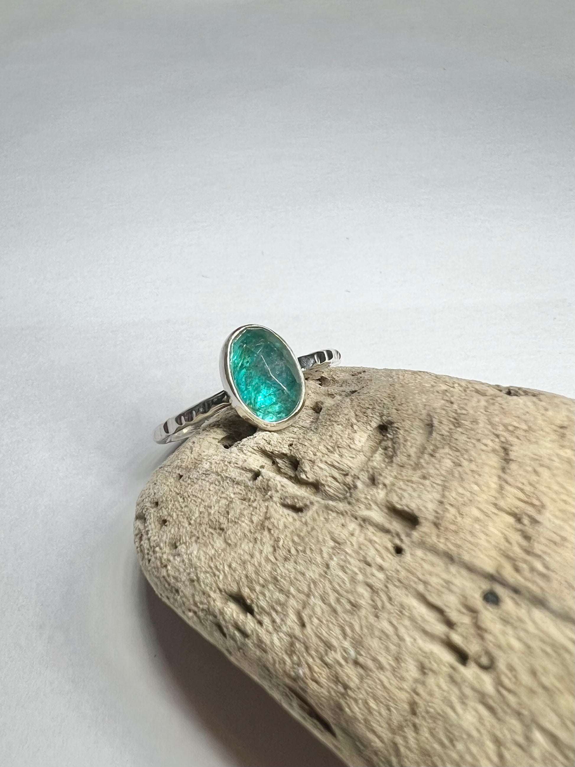 A beautiful vibrant apatite gem stone ring. This little stone has been set in to sterling silver to create a dainty ring.