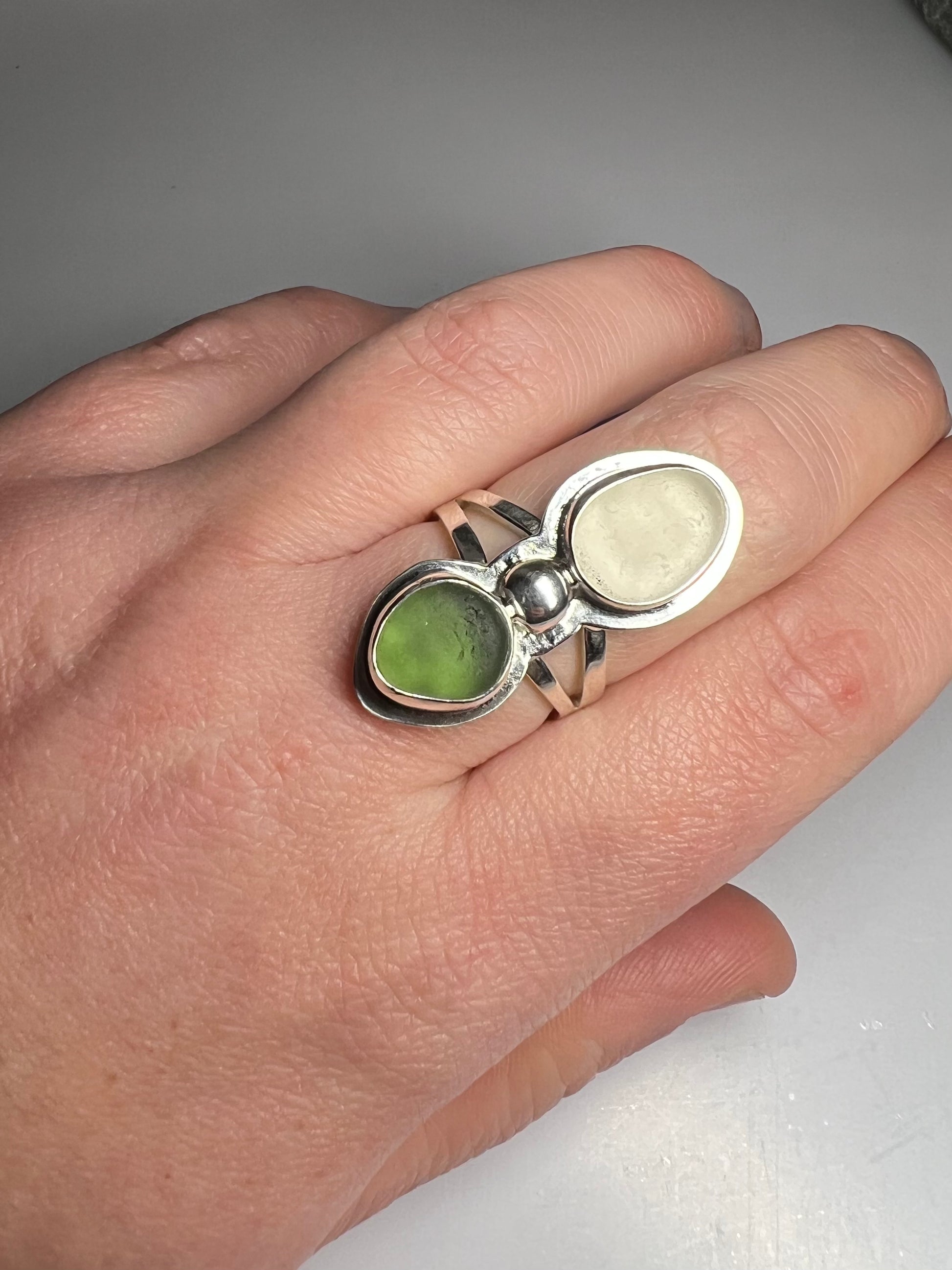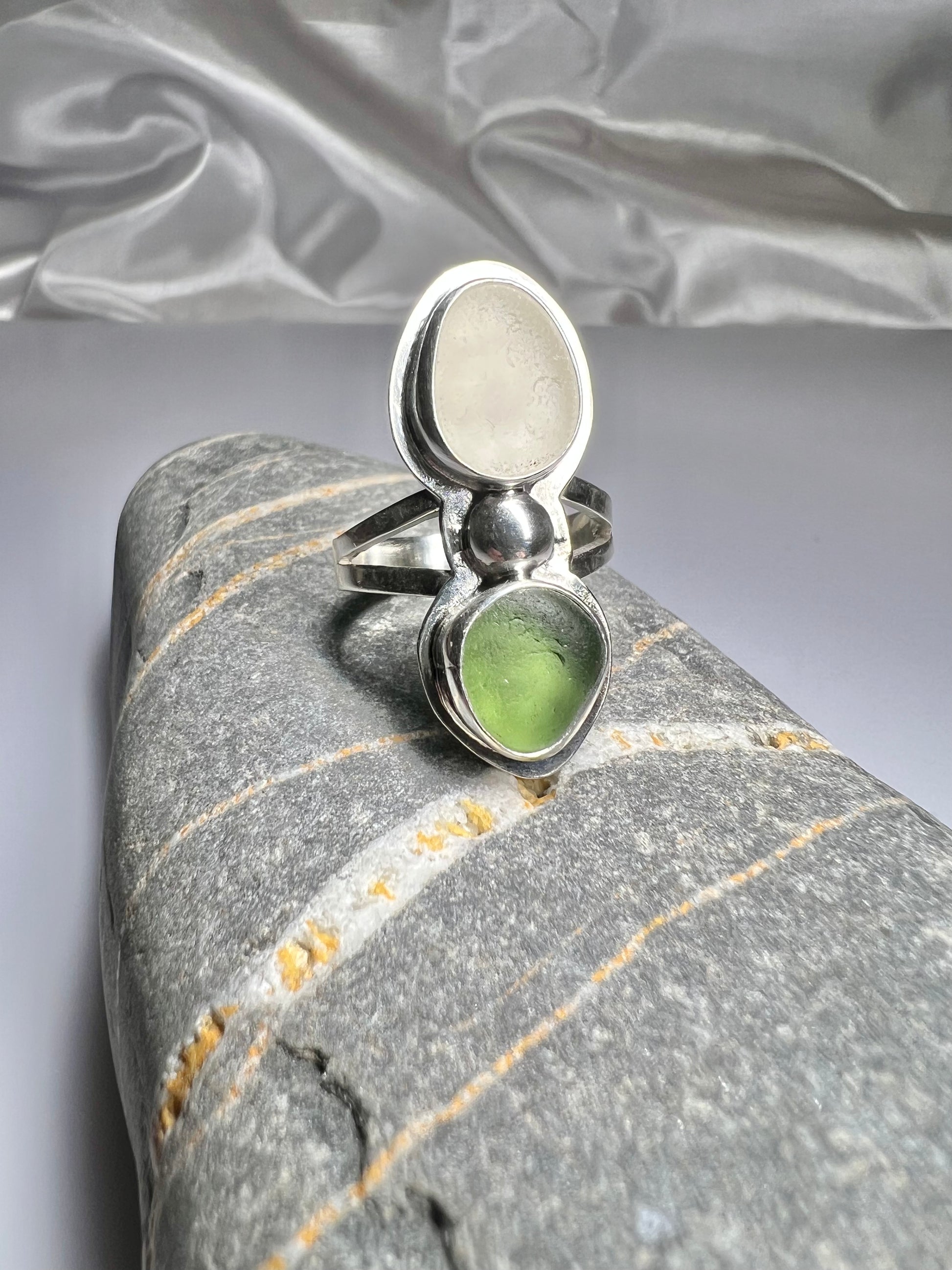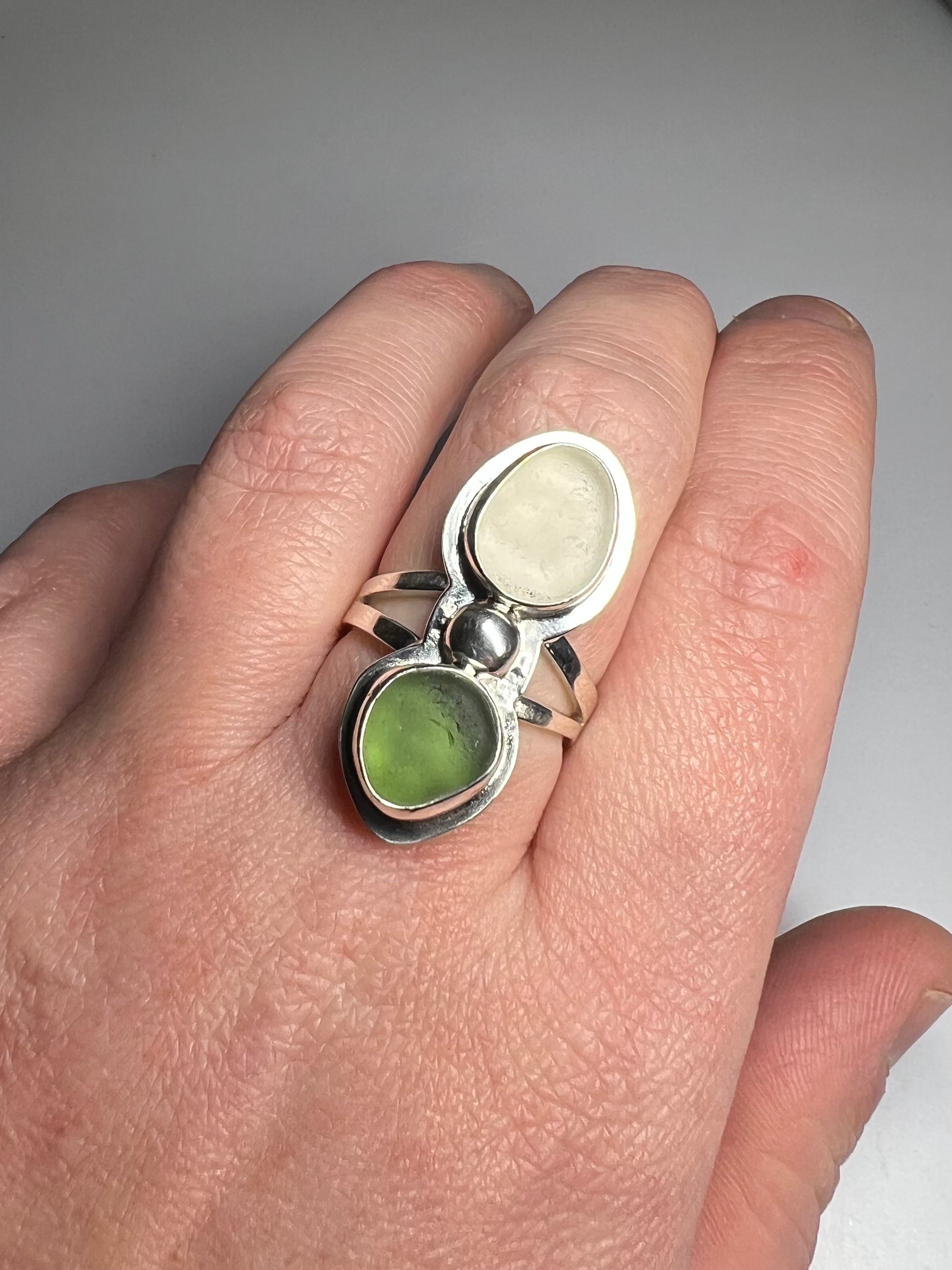 Cornish seaglass statement ring- Size P1/2