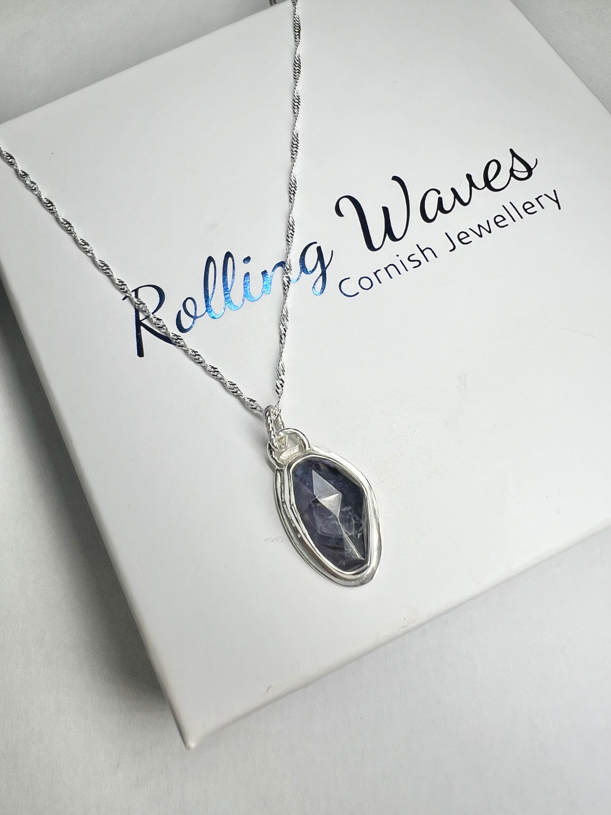 Your necklace will arrive on a Rolling waves backing card in a hand stamped rolling waves cotton bag or you can upgrade your order to have your necklace arrive in a Rolling Waves Cornish Jewellery box.