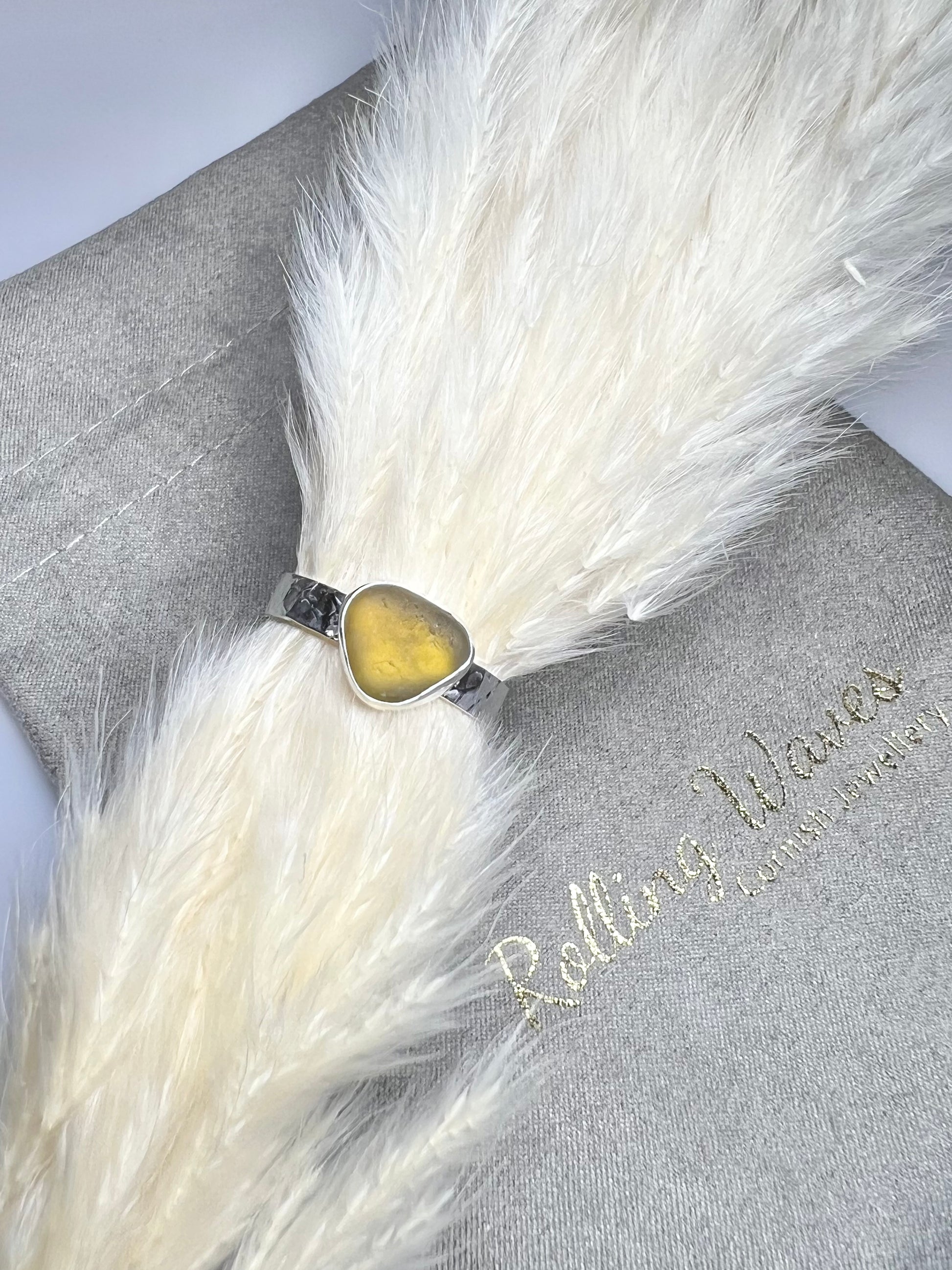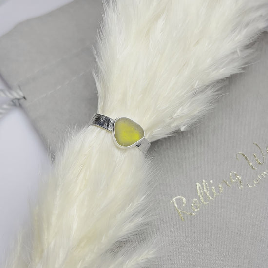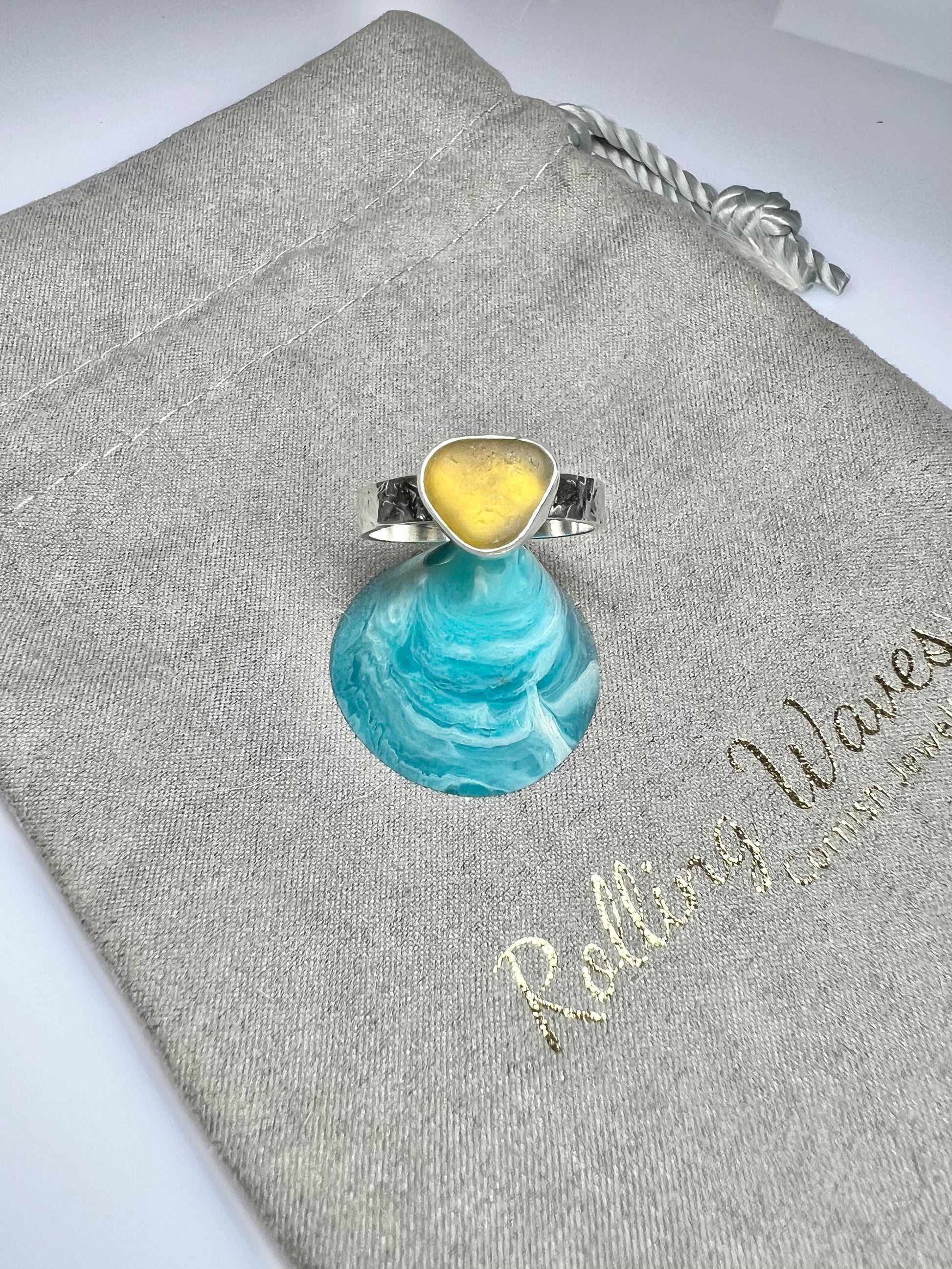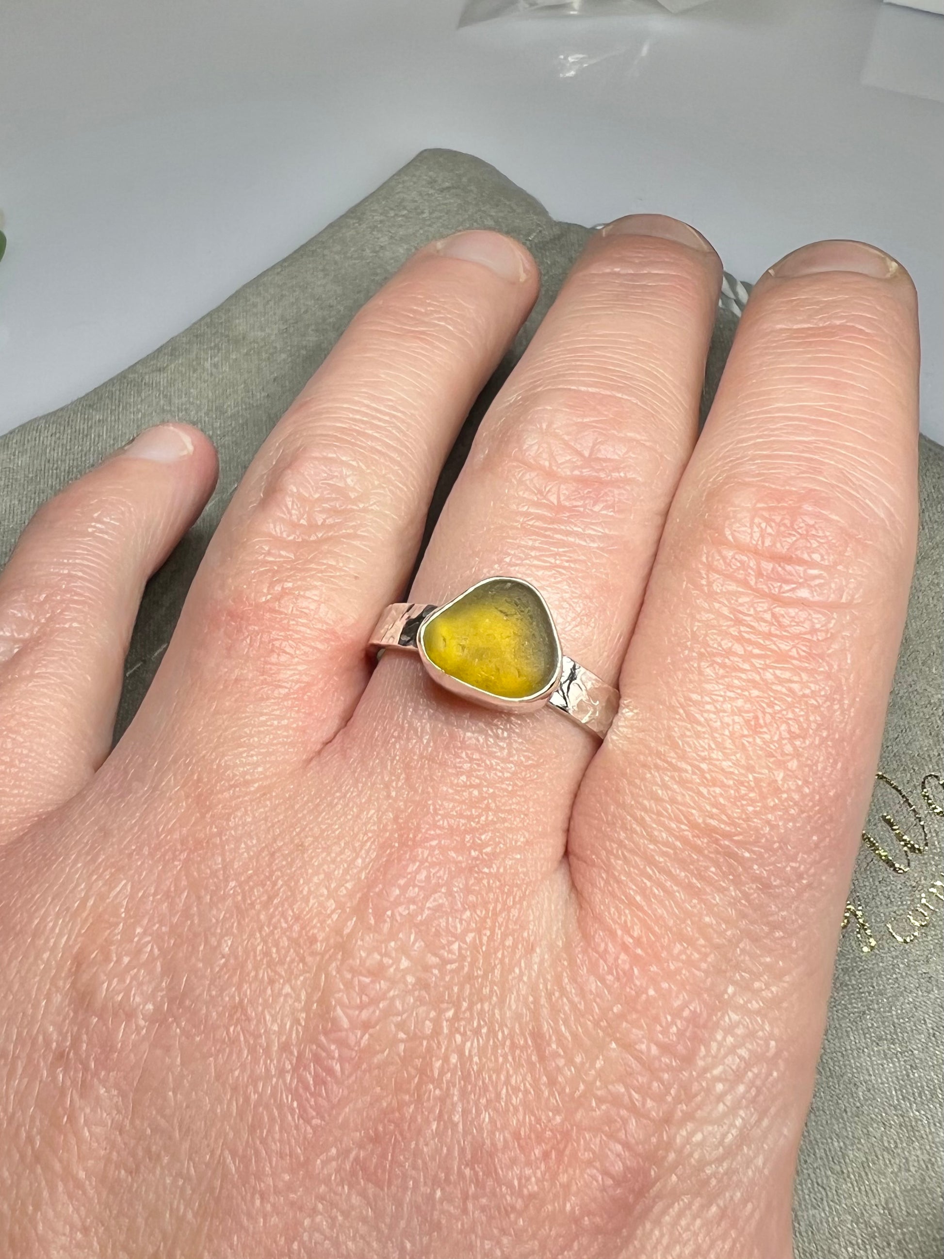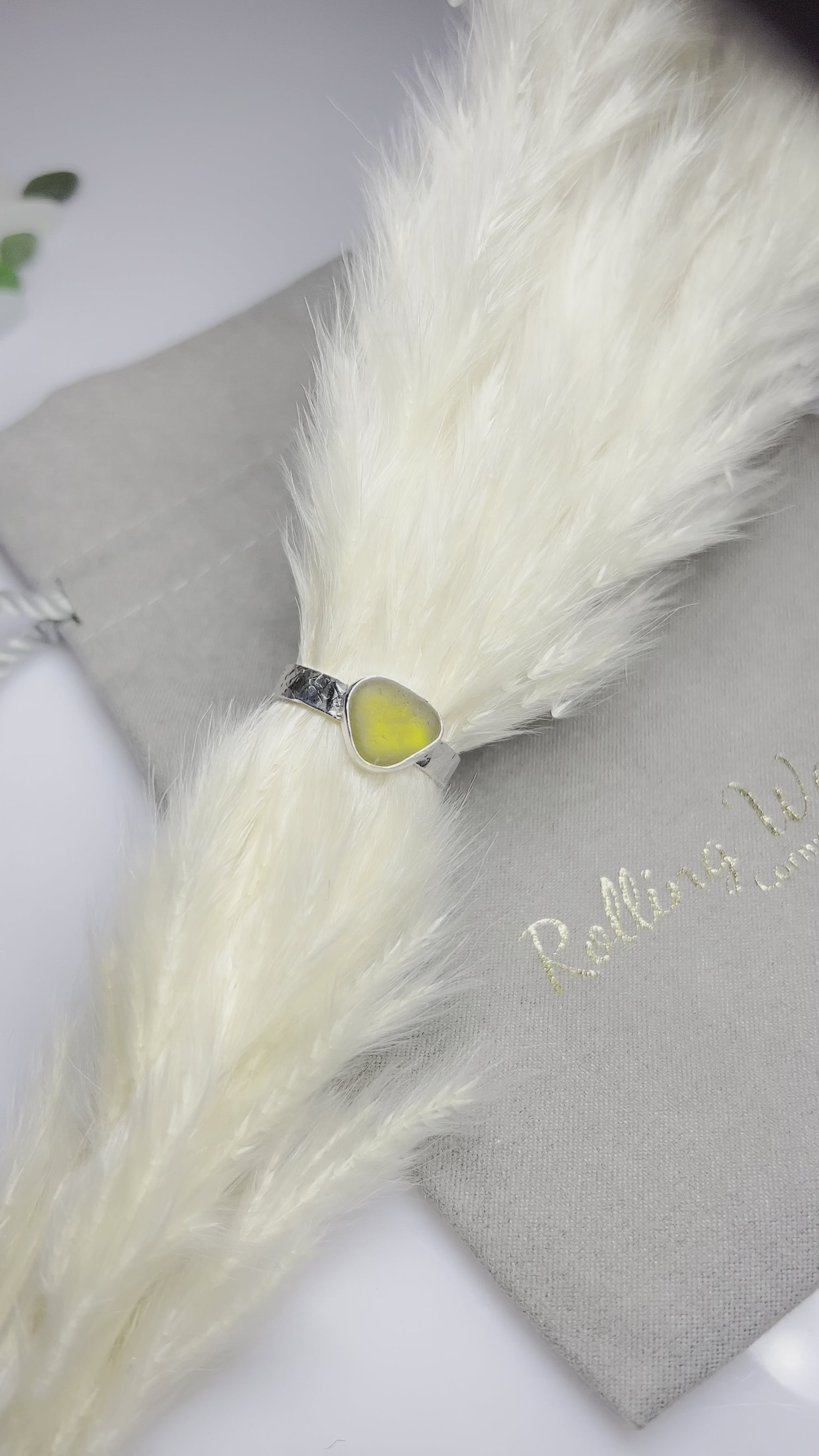 Rare yellow seaglass ring. Size U1/2 hallmarked