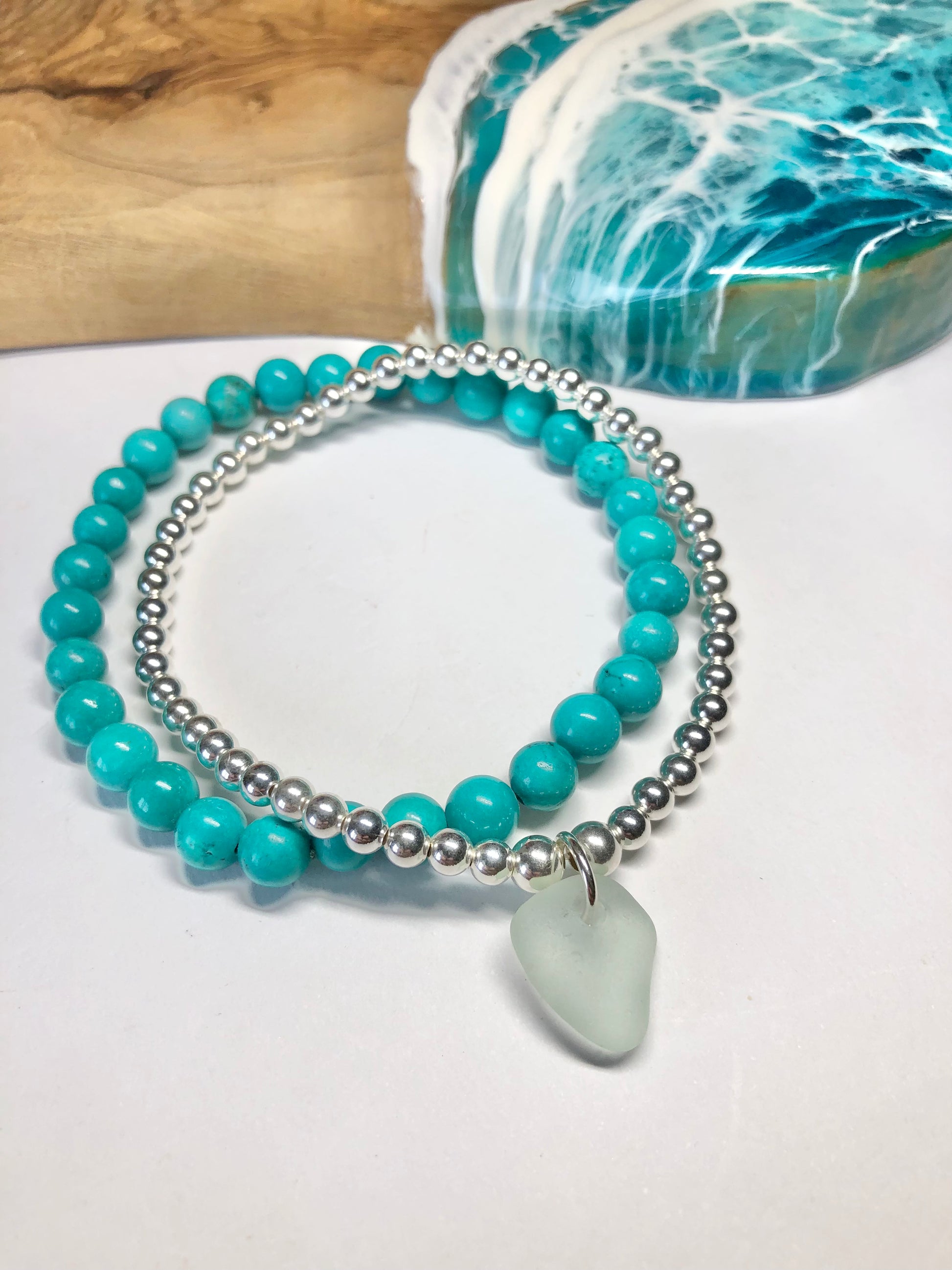 Please take extra care when putting on and removing the bracelet to not over stretch it as this could cause the elastic to snap or become weak. Over time the sea glass may start to look white from the natural frosting, if you prefer the sea glass to look brighter in colour you can rub a small amount of oil in to it and gently polish with a lint free cloth. I recommend using coconut or baby oil which is safe for skin contact.