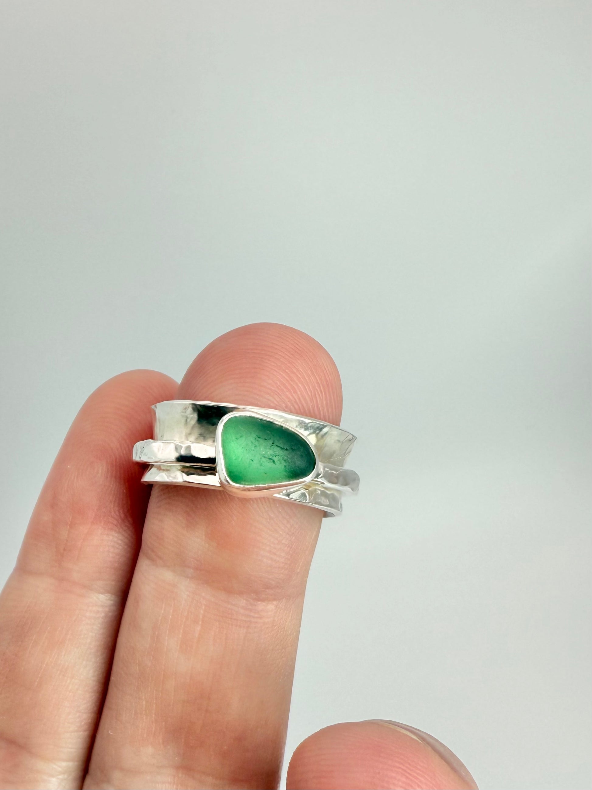 Please note I’ve made this ring so the spinning part of this ring isn’t really loose so prevent the seaglass from falling to the underside when worn.